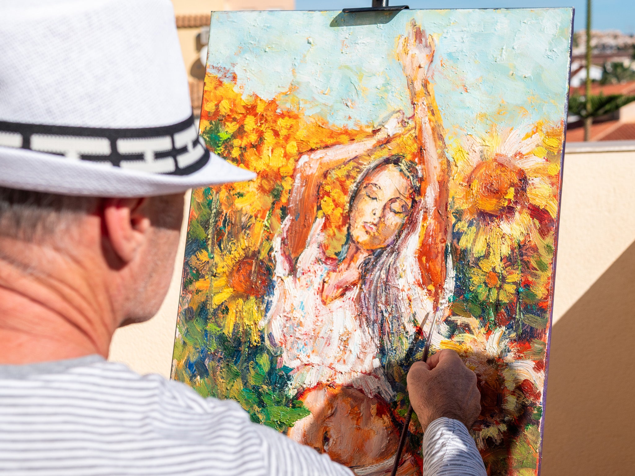 I use both palette knife and brush techniques to create textured reliefs—an impressionism that brings every stroke to life.